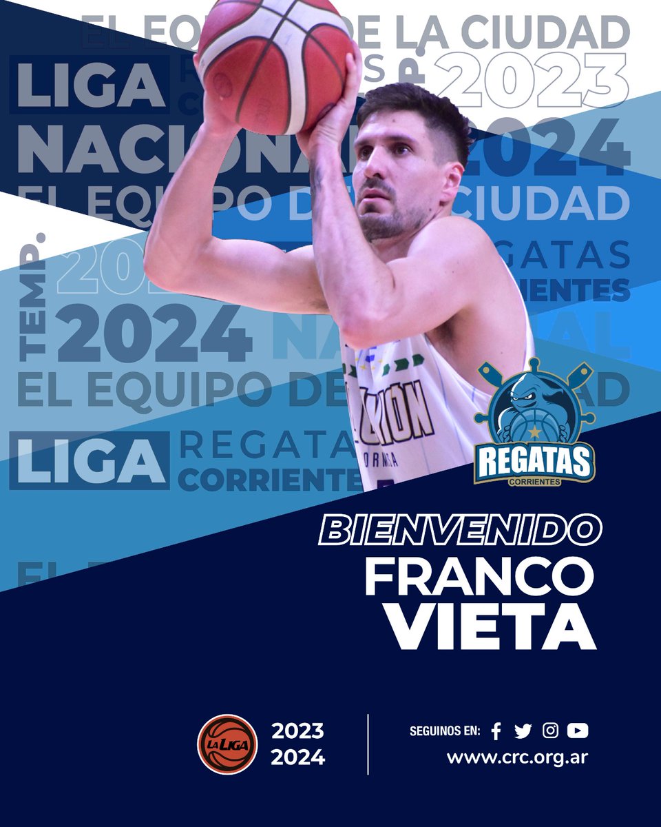 El perimetral es otro de los jugadores que representará a Regatas Corrientes en la próxima temporada de la Liga Nacional. El Club de Regatas Corrientes jugará en la 2023/24 su 20° temporada en la Liga Nacional, y con respecto a eso, la dirigencia viene trabajando junto al DT Fernando Calvi en el armado del plantel, y ahora se confirmó el arribo del perimetral Franco Vieta.