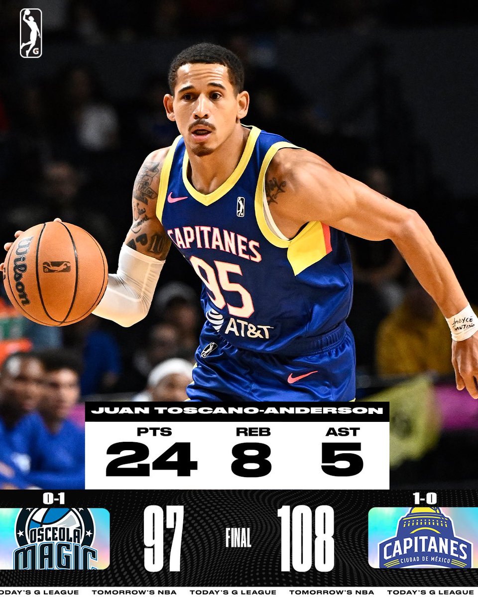 La franquicia mexicana se impuso a Osceola Magic por 97-108 en un partido donde arrancaron con dos triples de Ethan Thompson y Juan Toscano y ya mandaban por 18-33 tras el primer parcial con el de Lakers y Warriors anotando y haciendo jugar a sus compañeros. Capitanes supo jugar y administrar esa ventaja y nunca vio peligrar la victoria en su primera presentación de la temporada.