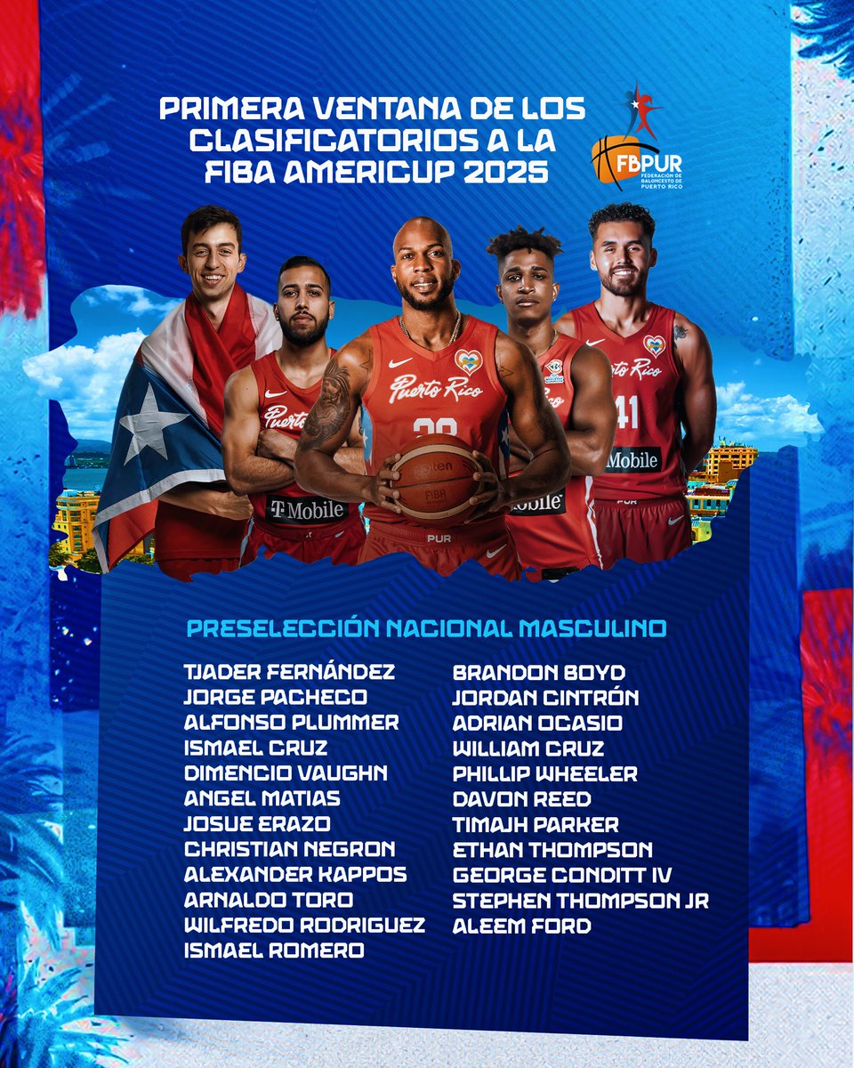El coach Nelson Colón contará con una preselección formada por Tjader Fernandez, Georgie Pacheco, Alfonso Plummer, Ismael Cruz, Dimencio Vaughn, Ángel Matías, Josué Erazo, Christian Negrón, Alexander Kappos, Arnaldo Toro, Wilfredo Rodríguez, Ismael Romero, Brandon Boyd, Jordan Cintrón, Adrián Ocasio, William Cruz, Phillip Wheeler, Davon Reed, Timajh Parker, Ethan Thompson, George Conditt, Stephen Thompson y Aleem Ford.
