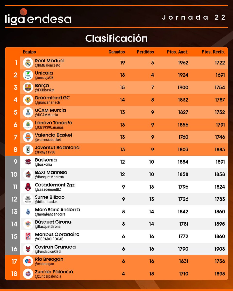 Este fin de semana se disputó la jornada 22 de la Liga Endesa, que será la última antes de la disputa de la Copa del Rey, y los jugadores latinoamericanos siguen dejando buenas actuaciones con hasta 14 de ellos por encima de la doble decena en anotación y con Andrés Feliz como el más destacado.