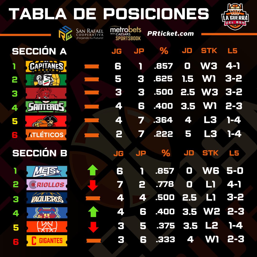 Los Gigantes de Carolina acaban con la racha de seis victorias al hilo de los Criollos de Caguas. Un triple de Alexander Franklin y una defensa extraordinaria de Evander Ortiz sellan la victoria para los locales con marcador final de 98-96. Ambos equipos se repartieron los periodos, pero la diferencia estuvo en el tercero donde los locales lograron ganarlo por un margen de cinco puntos. El bajo porcentaje en el triple de Carolina había sido la constante en sus primeras derrotas de la temporada, lograron mejorar eso, pero se les cayó la efectividad en el tiro libre, hoy ambas armas ofensivas estuvieron presentes y pudieron salir con la victoria como local.