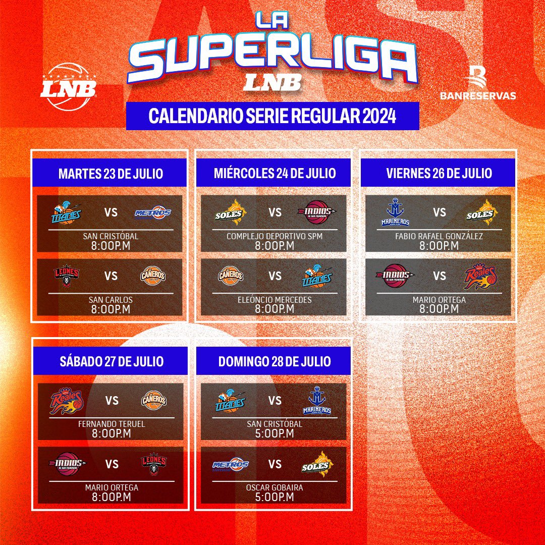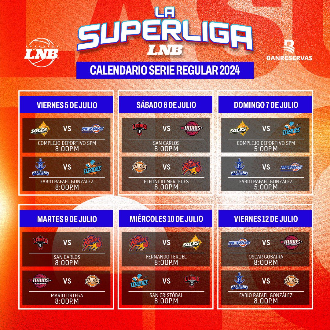 La campaña regular de La Súper Liga de la LNB será de 14 juegos para cada equipo y se extenderá hasta el domingo 28 de julio. De martes a sábado, todos los encuentros de La Súper Liga de la LNB serán a las 8:00 de la noche, mientras que los domingos la hora de inicio será a las 5:00 de la tarde. Lunes y jueves habrá descanso.