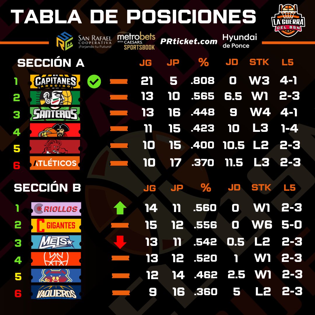 Los Capitanes de Arecibo no quitan el pie del acelerador, mientras que Indios y Criollos ganaron para mantenerse entre los primeros dos lugares de sus secciones y los Cangrejeros de Santurce siguen cosechando victorias y bajan de la cima a los Mets de Guaynabo.