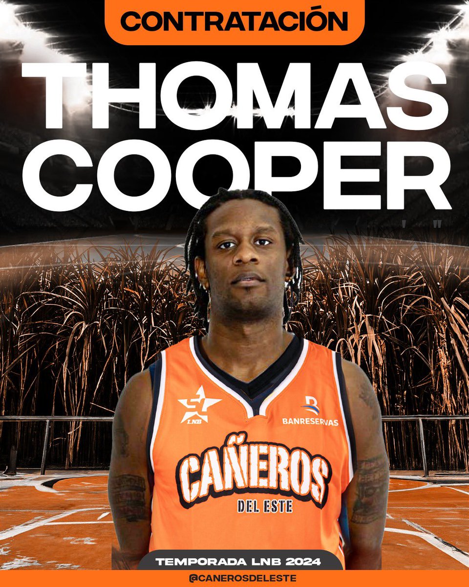 El otro refuerzo es Thomas Cooper, un delantero pequeño de 6’5 de estatura y 32 años de edad con basta experiencia en ligas de suramerica, en argentina con Hispano Americano, Argentino de Junin y la Unión de Formosa, como en Brasil con el equipo de Brasilia. Su actuación más reciente es en la liga de primera división de Brasil donde tuvo una actuación de 17.6 puntos con 5.1 rebotes y 4.2 asistencias en 36 encuentros que vio acción esta temporada.