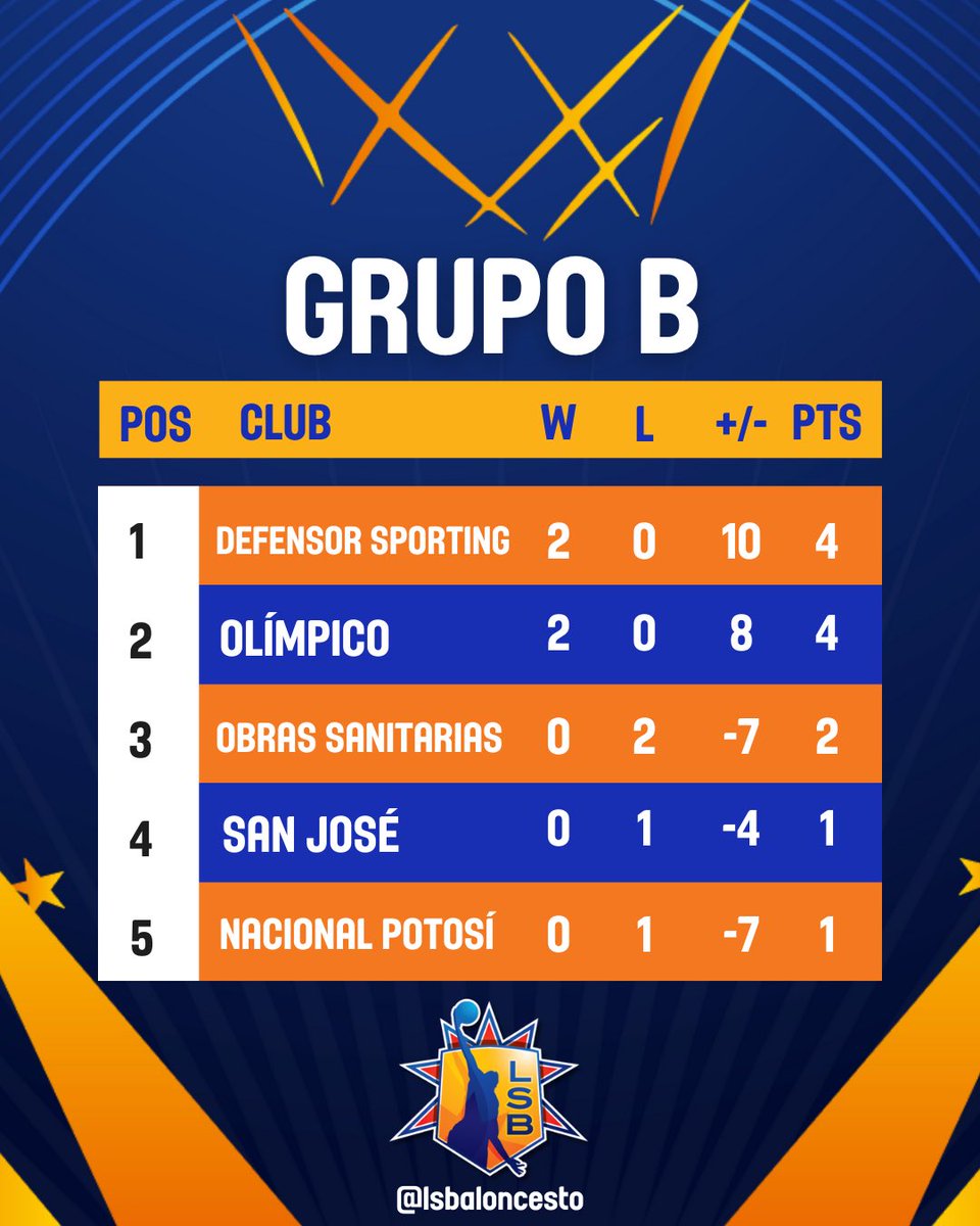 Los uruguayos salen airosos en un duelo muy parejo. Defensor Sporting ejecutó mejor que su oponente en las postrimerías del partido y logró su segundo triunfo en el grupo, esta vez sobre Deportivo San José por 73-69. La dupla de importados de James Montgomery y Malik Curry por segundo día corrido destacó. Montgomery logró un doble-doble de 21 puntos y 10 rebotes, mientras que el base aportó 20 unidades (9 de 10 en tiros libres) y 4 asistencias.