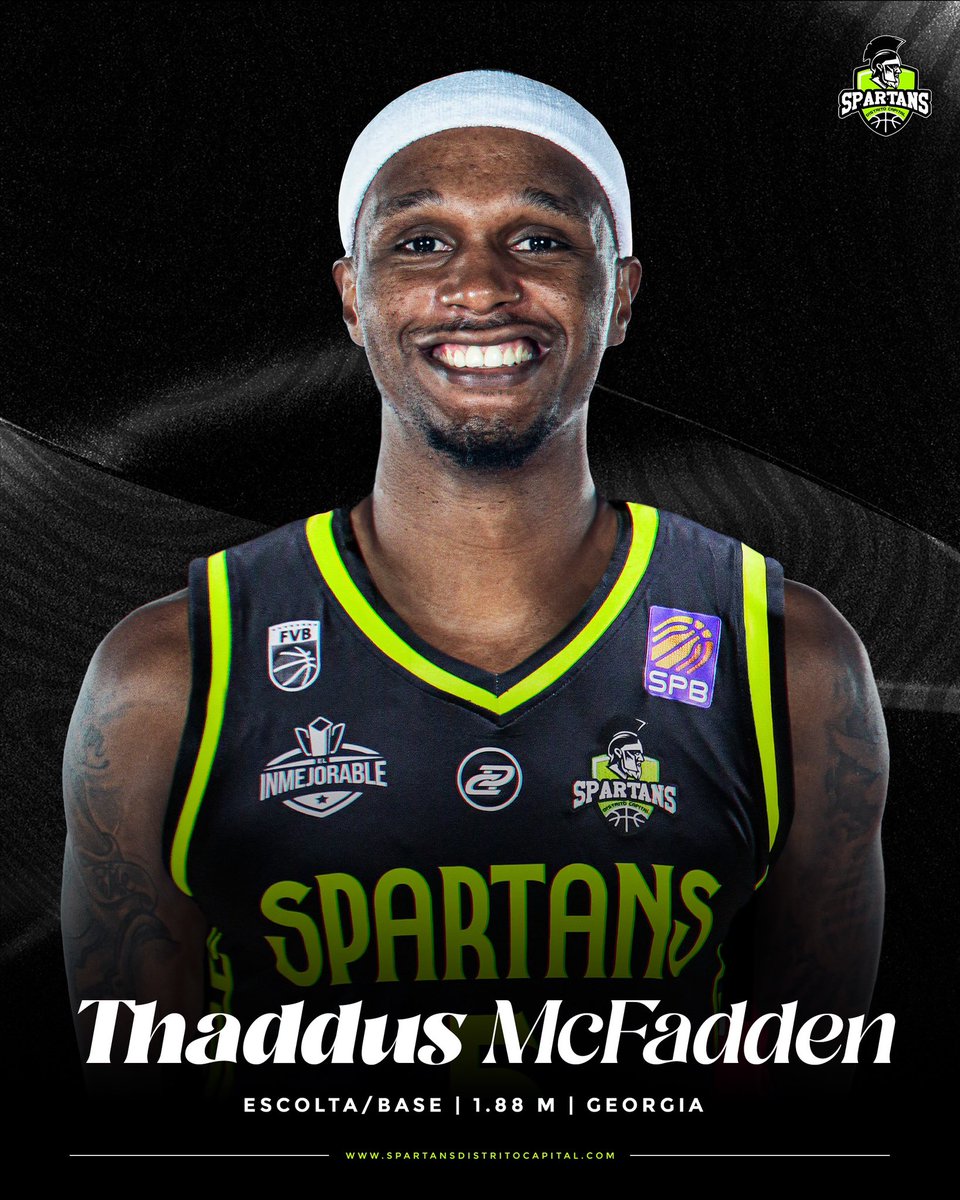Spartans Distrito Capital anuncia la contratación del escolta/base estadounidense-georgiano Thaddus McFadden, quien arribó a Venezuela este miércoles y estará a disposición del cuerpo técnico para la serie ante Gladiadores de Anzoátegui -24 y 25 de abril-.