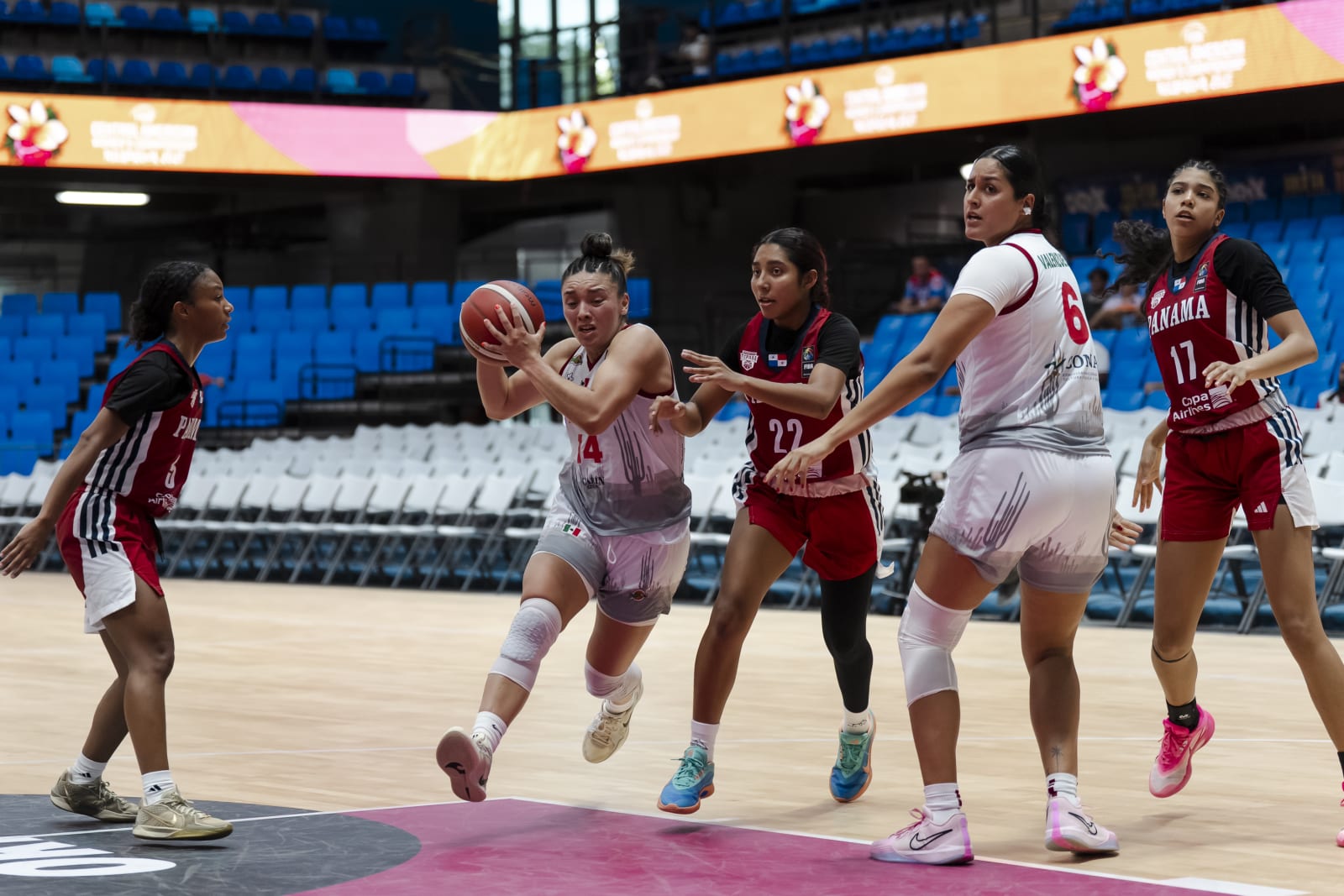 México 67 – Panamá 48. Mariana Valenzuela consiguió doble-doble de 11 puntos y 13 rebotes para guiar a las mexicanas (1-0) a un triunfo en su debut. La interna también repartió 2 tapas y 2 asistencias en 27 minutos, mientras que su compañera Alexia Lagunas lideró la ofensiva con 12 tantos, 5 asistencias y 4 rebotes.
