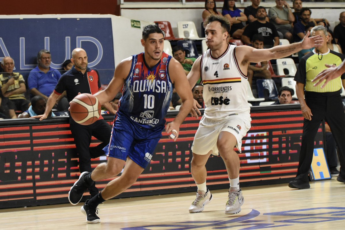 Luego de un pasaje parejo, acciones individuales de Gargallo y Giletto sacaban ventaja de diez para los correntinos. A Quimsa le costó el lado ofensivo y solo tuvo algunos pasajes de Meyinsse y Johnson, los dirigidos por Revidatti se iban al entretiempo arriba 42 a 31.
